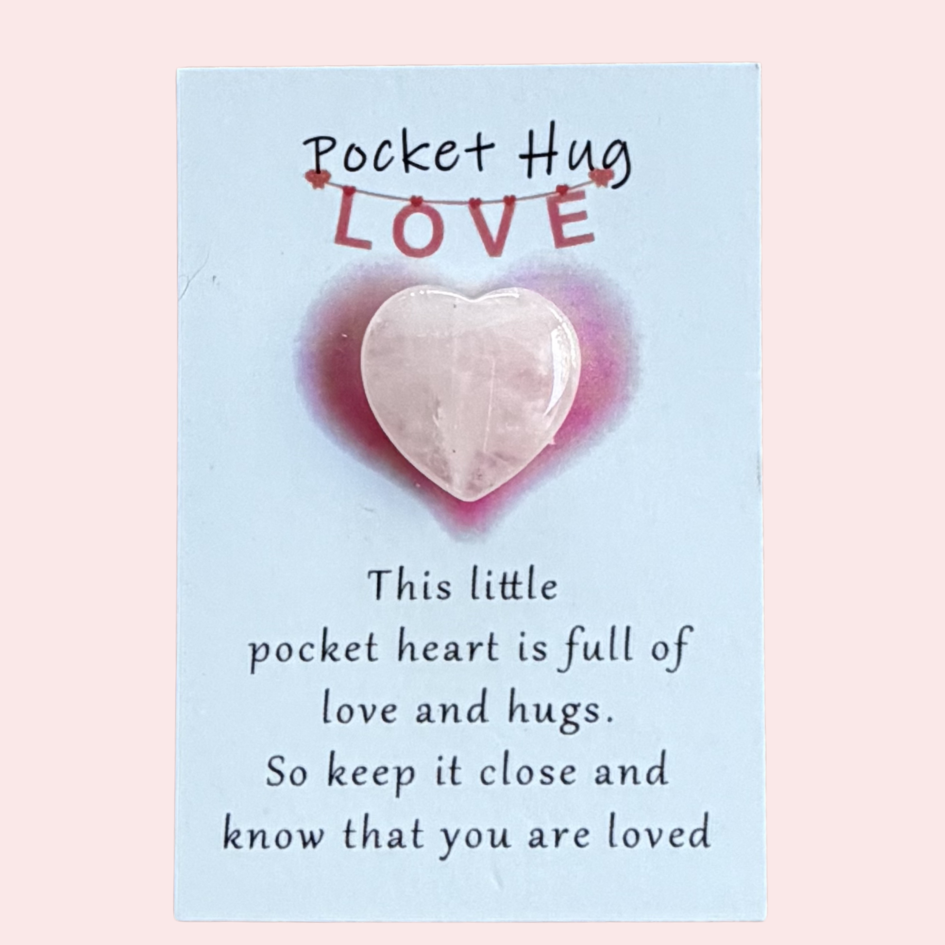 A beautiful pocket hug crystal heart symbolising love, warmth and emotional connection.